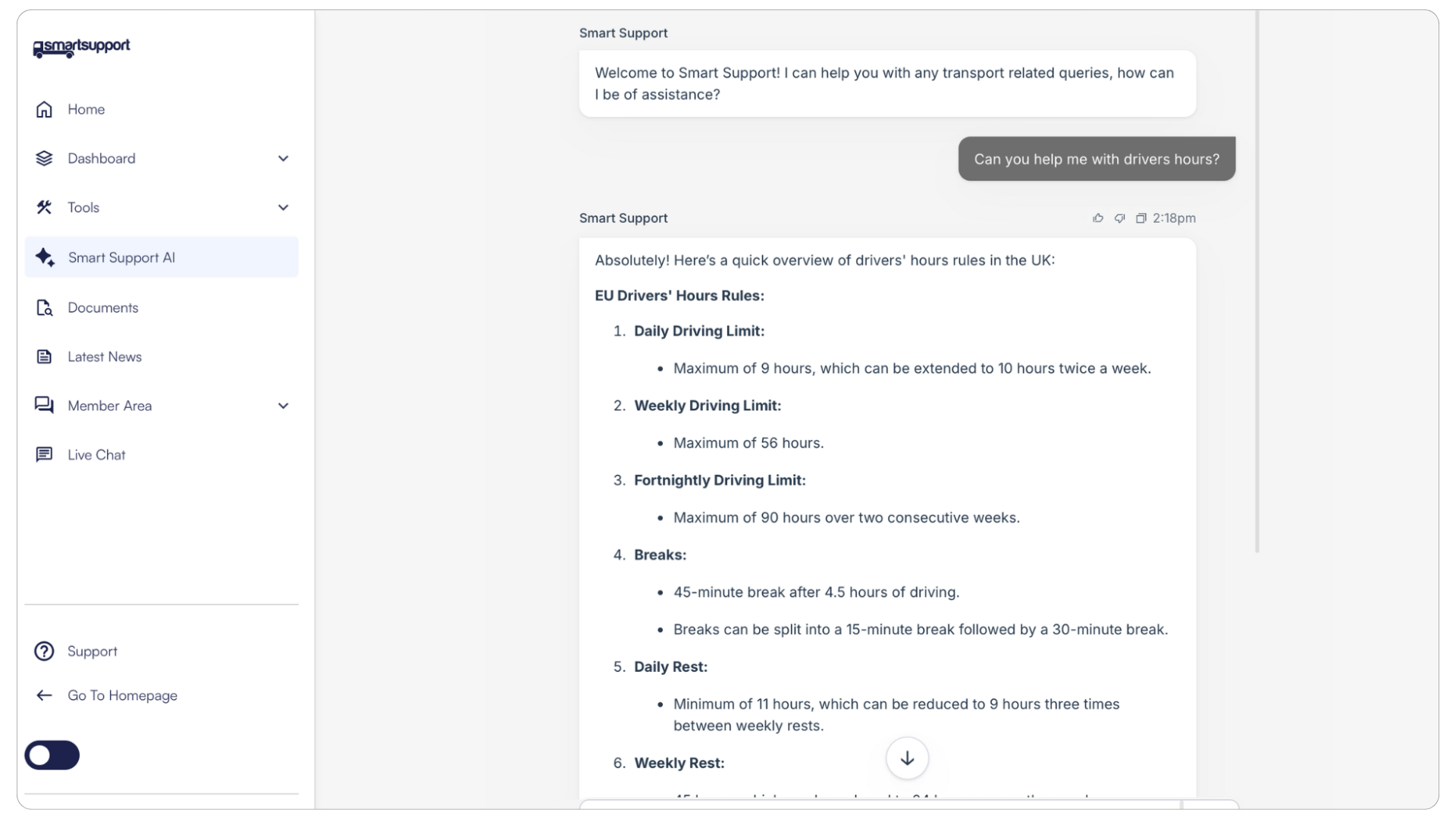 The AI is built using trusted UK transport sources and industry standards. It does not use your personal data to train itself. Your records stay private and are never fed into any external AI model.